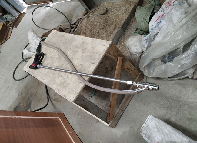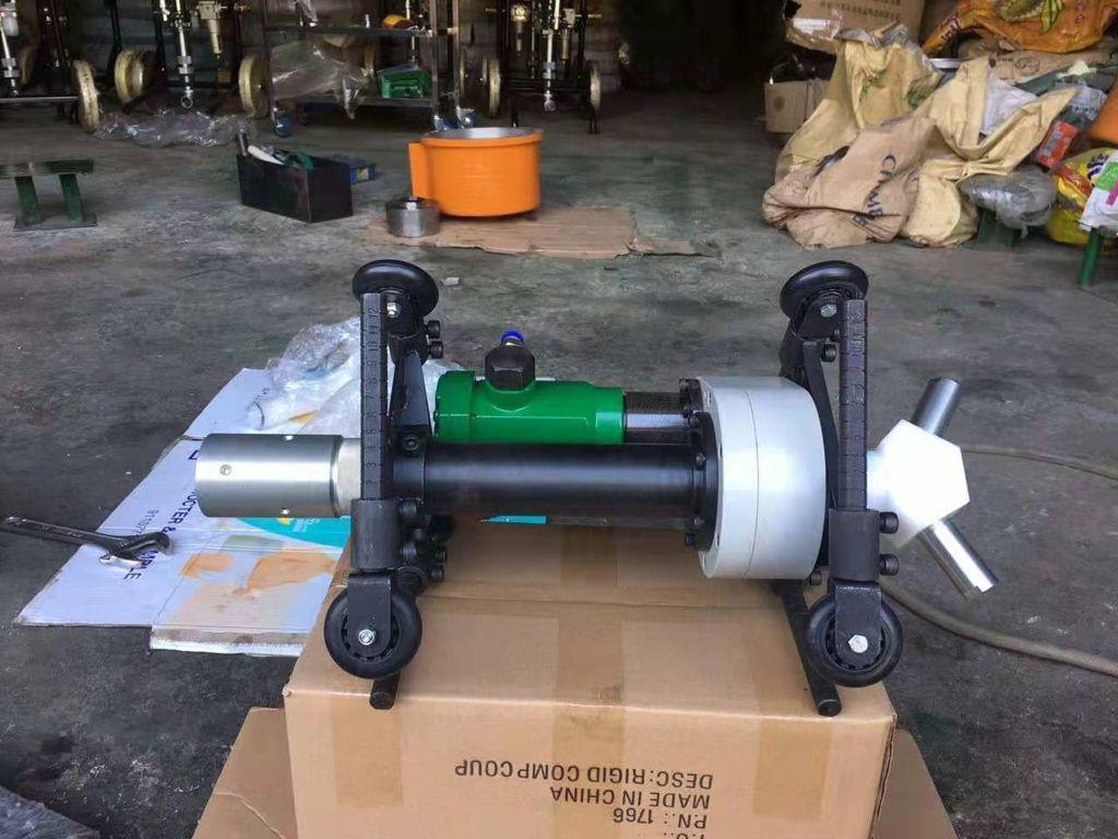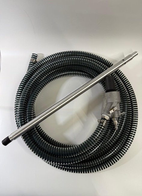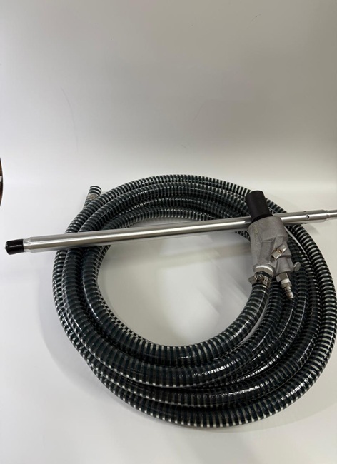 Каретка с дробеструйной штангой начинает движение в зону обработки. При заходе штанг внутрь труб, открывается клапан подачи дроби на струйно-абразивной установке и осуществляется подача дроби через шланги, штанги и сопла на внутреннюю, или наружную поверхность труб.