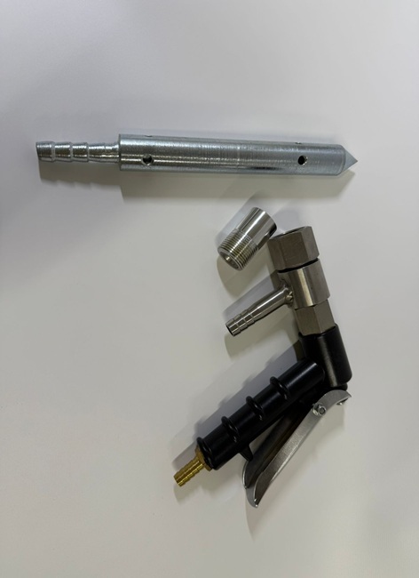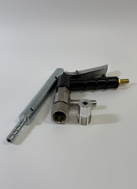 Штанги с соплами идут назад, обеспечивая продувку внутренней поверхности труб от частиц оставшейся дроби и пыли. После возврата каретки со штангами в исходное положение, прекращается подача сжатого воздуха, открывается крышка зоны обработки, снимается блокировка и трубки перемещаются на разгрузочный стол.