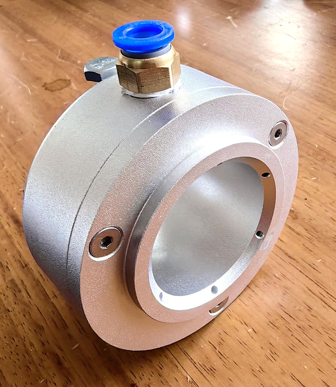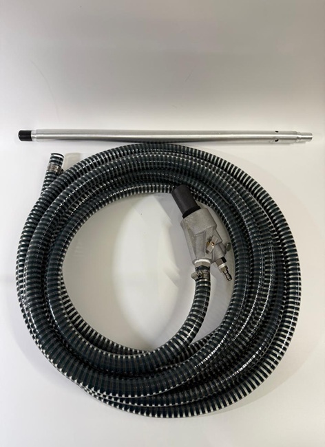 Противоположная зона обработки трубы закрывается защитной крышкой (кожухом) с автоматическим закрытием для исключения вылета дроби в помещение цеха сбору в систему сепарации и рекуперации. Система фильтрации защищает от пыли.